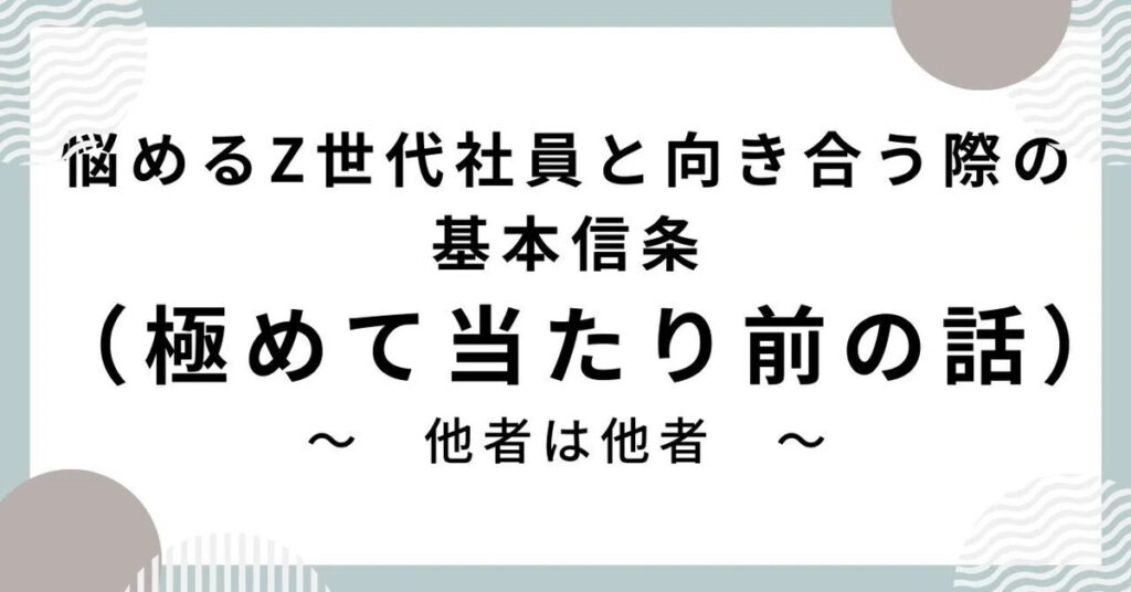 【当たり前の話】他者は他者 ~悩めるZ世代社員と向き合う際の基本信条~