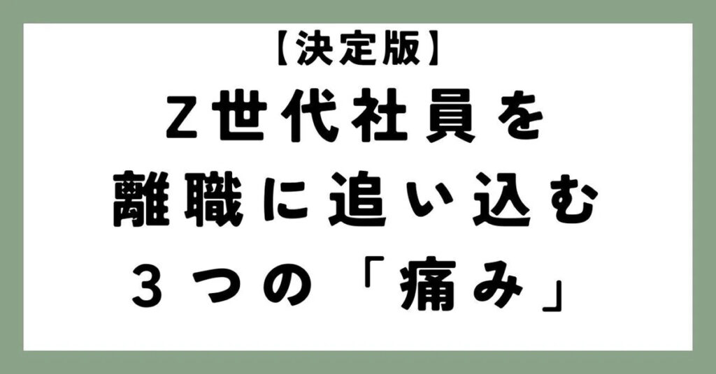 【決定版】Z世代社員を離職に追い込む3つの「痛み」