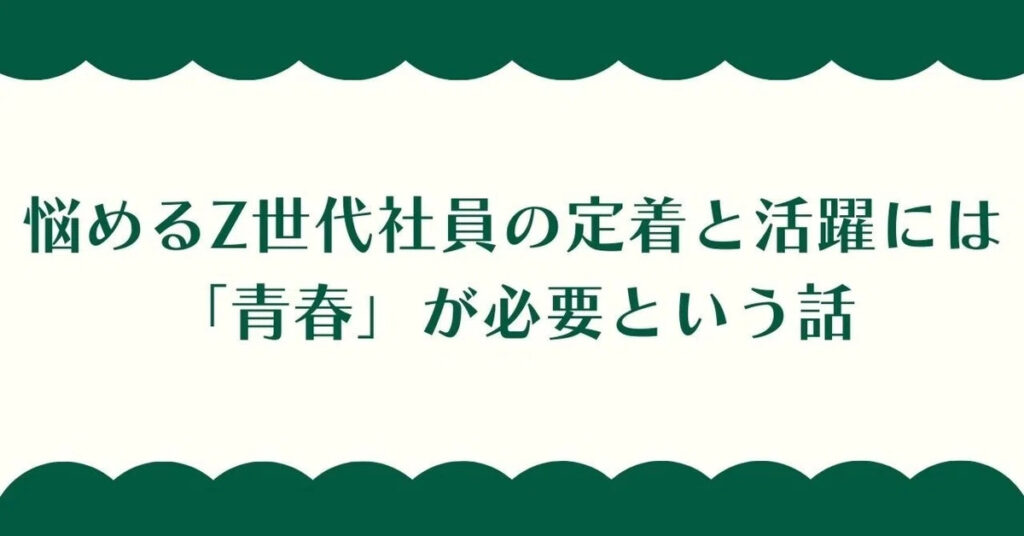 悩めるZ世代社員の定着と活躍には「青春」が必要という話