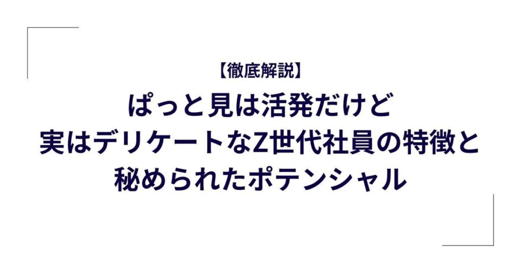 【徹底解説】ぱっと見は活発だけど実はデリケートなZ世代社員の特徴と秘められたポテンシャル