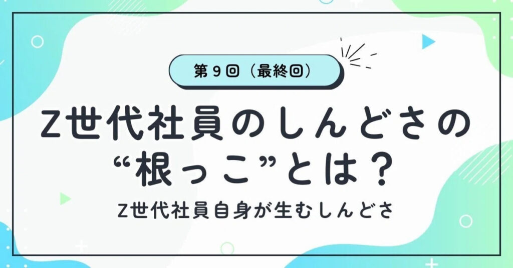 【最終回】Z世代社員自身が生むしんどさ ── Z世代社員のしんどさの“根っこ”とは?
